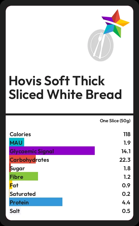 Hovis Soft Thick Sliced White Bread contains 1.8g sugar in one Slice (50g)