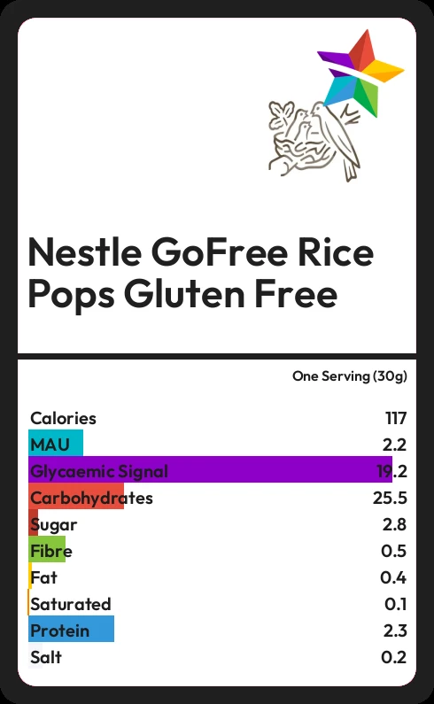 Nestle GoFree Rice Pops Gluten Free contains 117.3 calories in one Serving (30g).