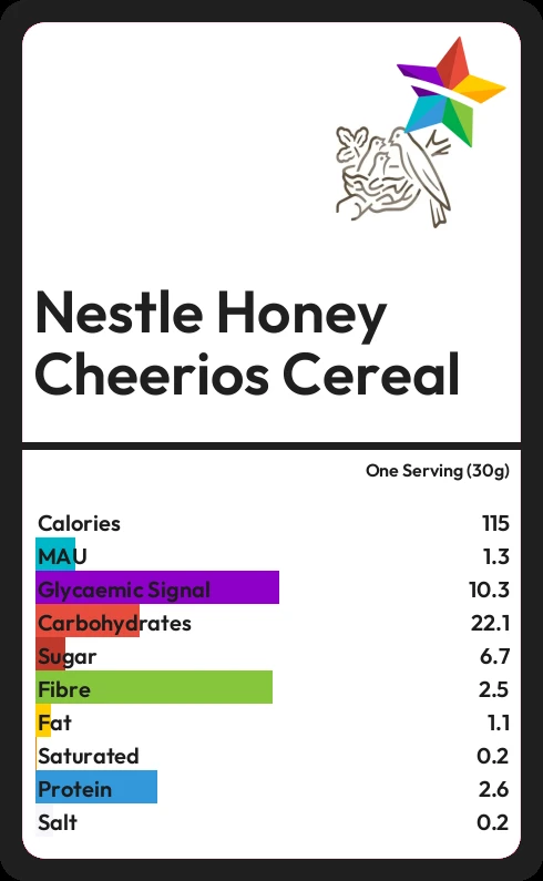 Nestle Honey Cheerios Cereal contains 114.6 calories in one Serving (30g).