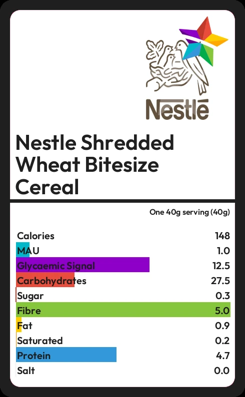 Nestle Shredded Wheat Bitesize Cereal contains 0.3g sugar in one 40g serving (40g)