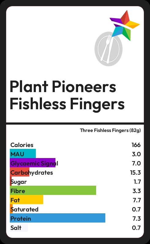 Plant Pioneers Fishless Fingers contains 166.5 calories in three Fishless Fingers (82g).