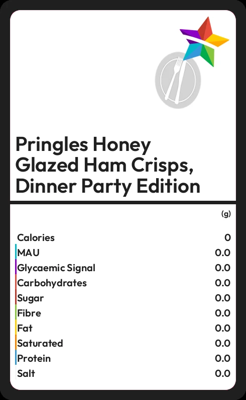 How much sugar in Pringles Honey Glazed Ham Crisps, Dinner Party Edition?