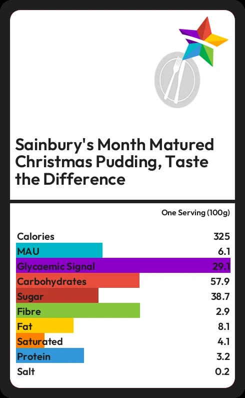 Sainbury's Month Matured Christmas Pudding, Taste the Difference contains 325 calories in one Serving (100g).