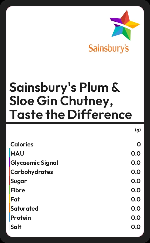 How much fat in Sainsbury's Plum & Sloe Gin Chutney, Taste the Difference?