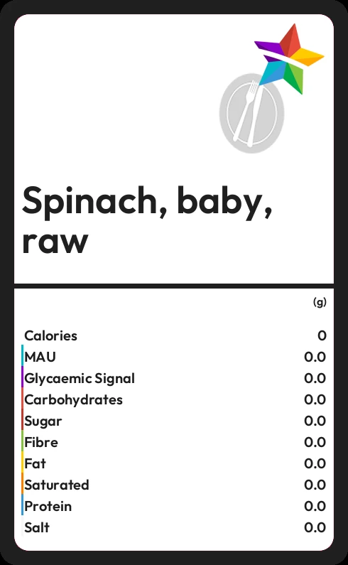 In 100g of Spinach, baby, raw there are 0.6g of fat of which 0.1g are saturated.