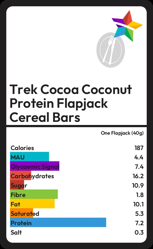 Trek Cocoa Coconut Protein Flapjack Cereal Bars contains 187.2 calories in one Flapjack (40g).