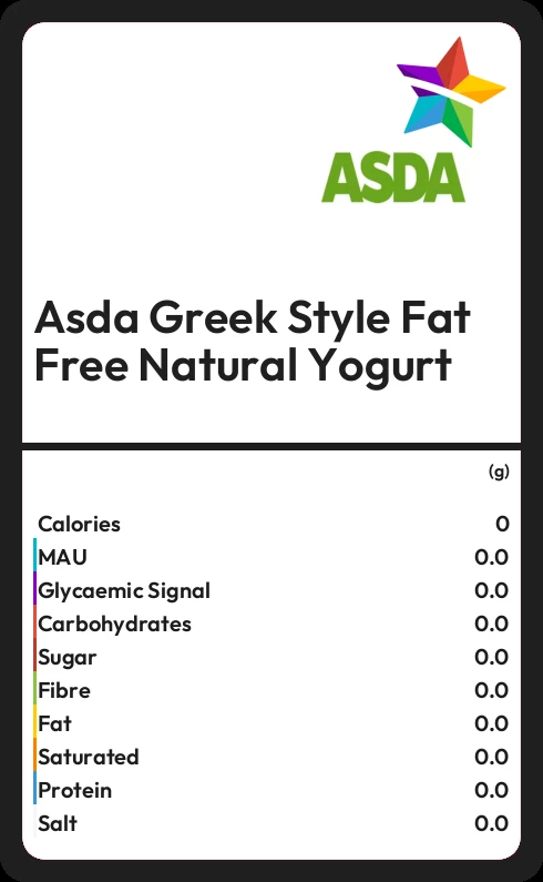 How much fat in Asda Greek Style Fat Free Natural Yogurt?