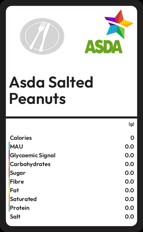 In 100g of Asda Salted Peanuts there are 53.0g of fat of which 9.5g are saturated.