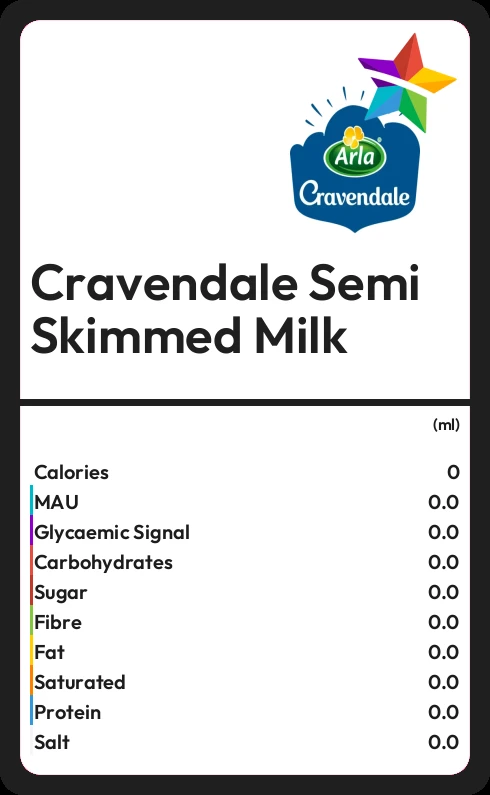 Cravendale Semi Skimmed Milk contains 49 calories in 100ml.