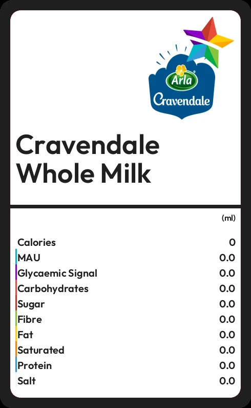 Cravendale Whole Milk contains 65 calories in 100ml.