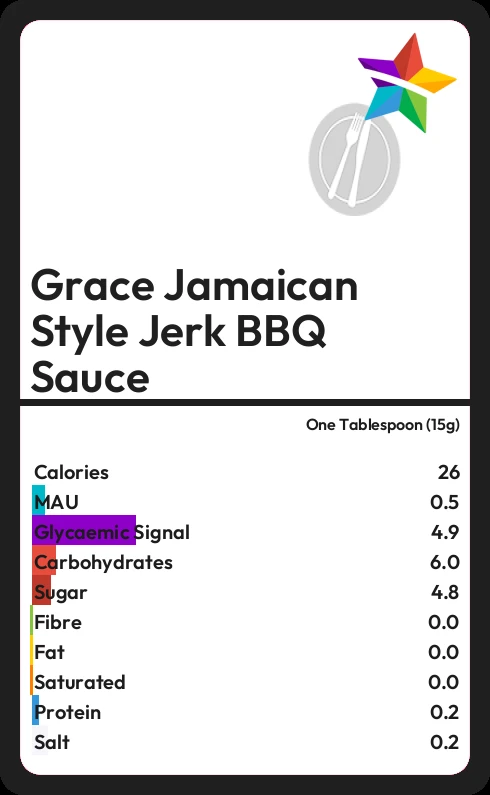 Grace Jamaican Style Jerk BBQ Sauce contains 25.8 calories in one Tablespoon (15g).