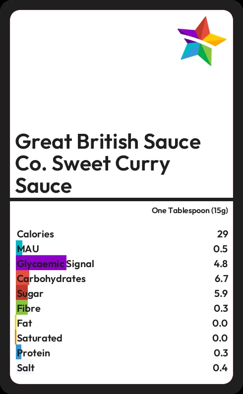 How much sugar in Great British Sauce Co. Sweet Curry Sauce?