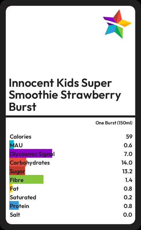 Innocent Kids Super Smoothie Strawberry Burst contains 13.2g sugar in one Burst (150ml) - that is around 3 cubes of sugar.