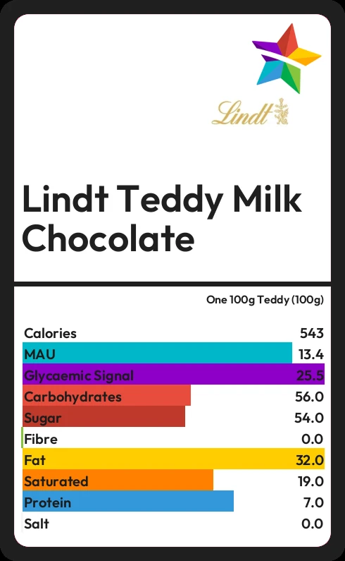 How much sugar in Lindt Teddy Milk Chocolate?