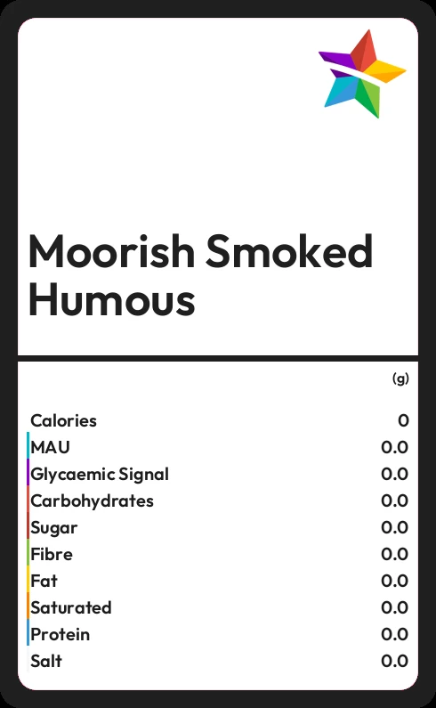 Moorish Smoked Humous contains 0.7g sugar in 100g