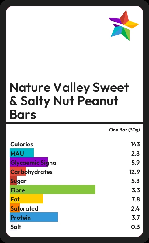 Nature Valley Sweet & Salty Nut Peanut Bars contains 142.8 calories in one Bar (30g).