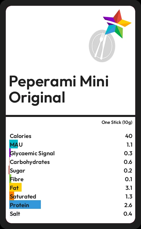 Peperami Mini Original contains 0.2g sugar in one Stick (10g)