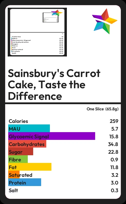 How much sugar in Sainsbury's Carrot Cake, Taste the Difference?