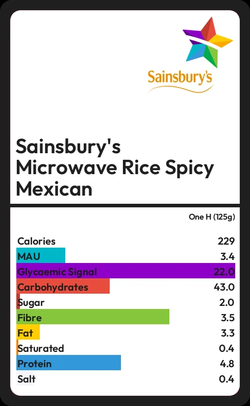Sainsbury's Microwave Rice Spicy Mexican contains 228.8 calories in one H (125g).