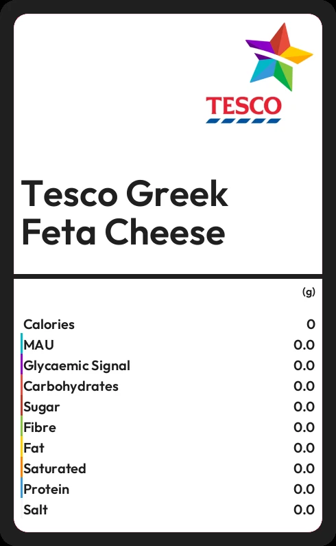 Tesco Greek Feta Cheese contains no sugar in 100g