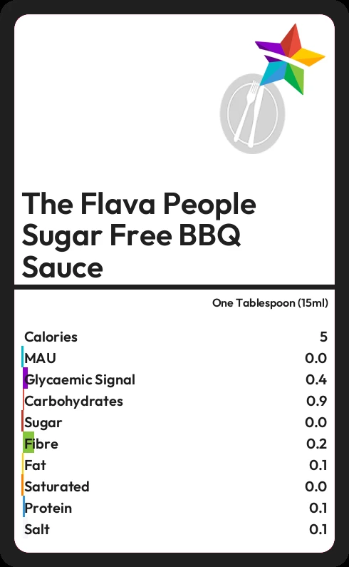 The Flava People Sugar Free BBQ Sauce contains no sugar in one Tablespoon (15ml)