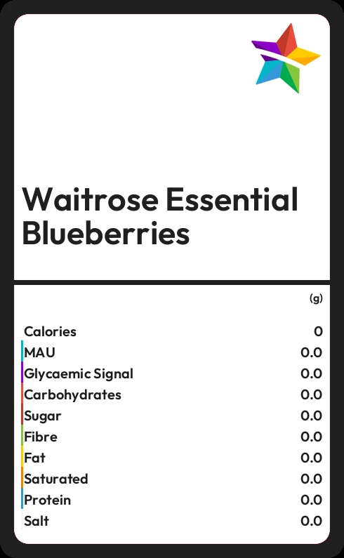 In 100g of Waitrose Essential Blueberries there are 0.5g of fat of which none are saturated.