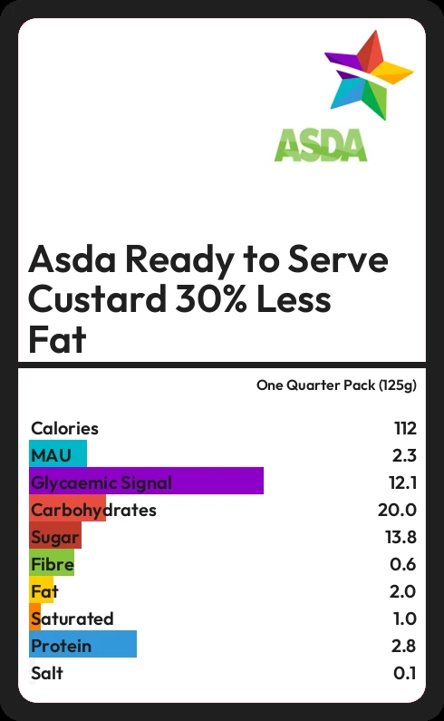 How much fat in Asda Ready to Serve Custard 30% Less Fat?