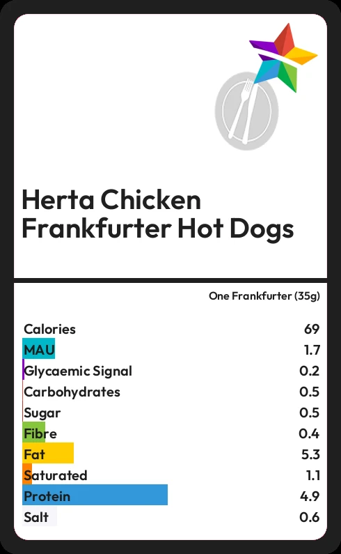 Herta Chicken Frankfurter Hot Dogs contains 0.5g sugar in one Frankfurter (35g)