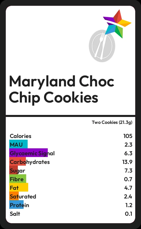 Maryland Choc Chip Cookies contains 104.8 calories in two Cookies (21.3g).
