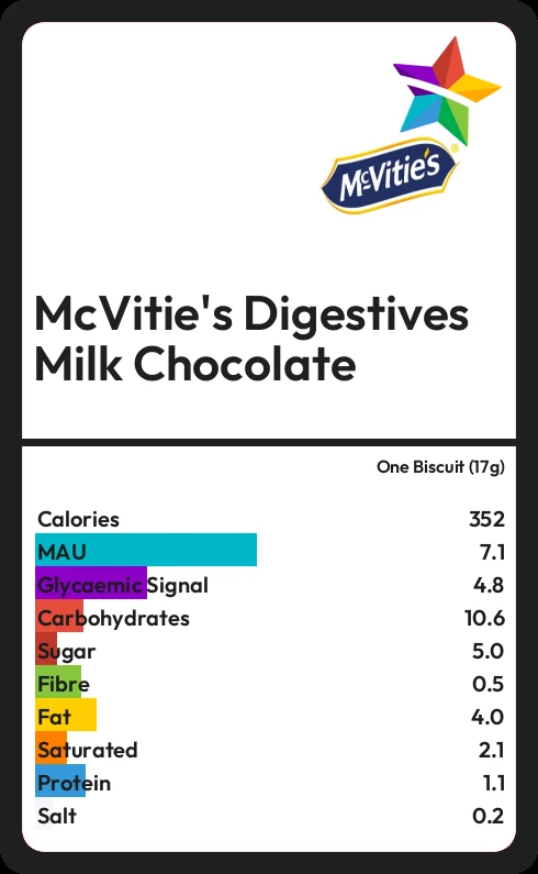 McVitie's Digestives Milk Chocolate contains 352.1 calories in one Biscuit (17g).