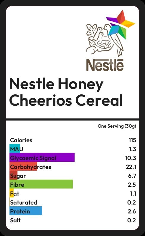 Nestle Honey Cheerios Cereal contains 114.6 calories in one Serving (30g).