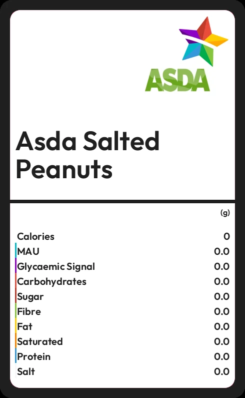 In 100g of Asda Salted Peanuts there are 53.0g of fat of which 9.5g are saturated.