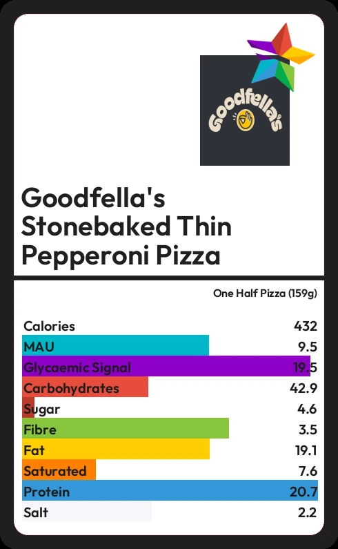 Goodfella's Stonebaked Thin Pepperoni Pizza contains 432.5 calories in one Half Pizza (159g).