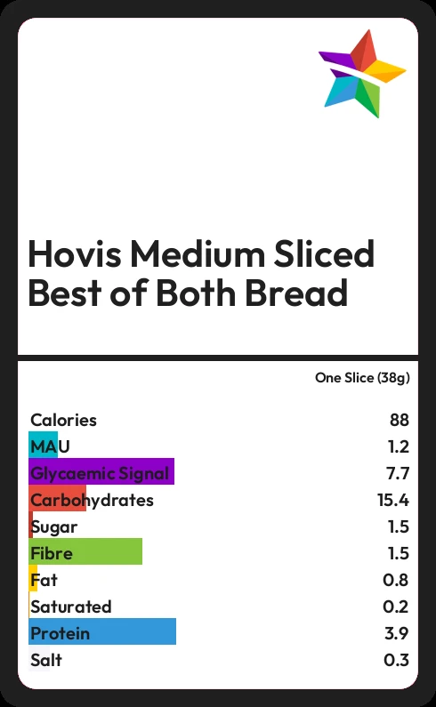 Hovis Medium Sliced Best of Both Bread contains 88.2 calories in one Slice (38g).