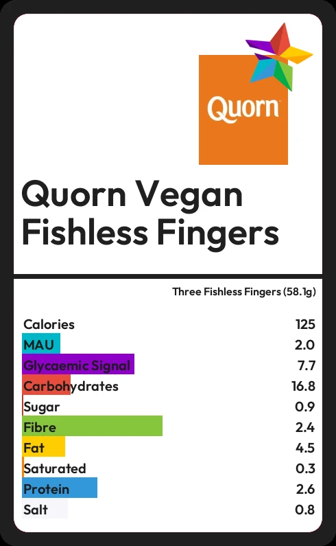 Quorn Vegan Fishless Fingers contains 0.9g sugar in three Fishless Fingers (58.1g)