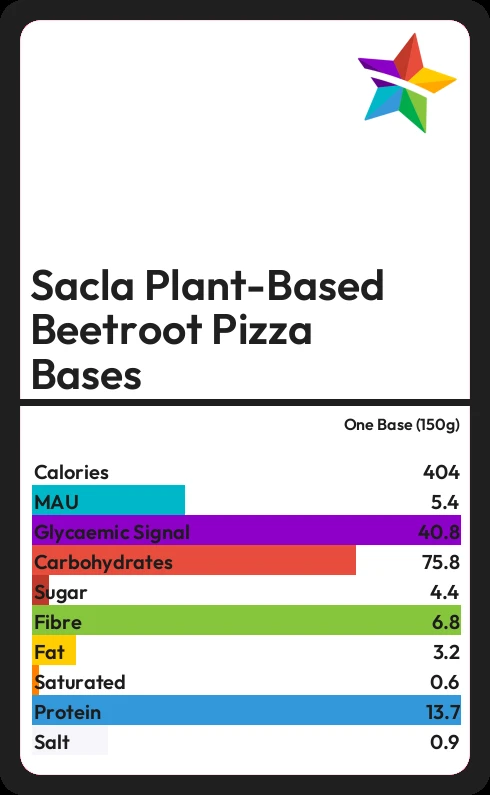 Sacla Plant-Based Beetroot Pizza Bases contains 4.4g sugar in one Base (150g) - that is around 1 cube of sugar.