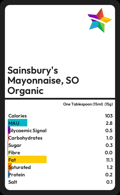 How much fat in Sainsbury's Mayonnaise, SO Organic?