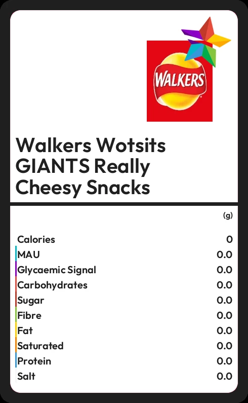 Walkers Wotsits GIANTS Really Cheesy Snacks contains 6.7g sugar in 100g - that is around 2 cubes of sugar.