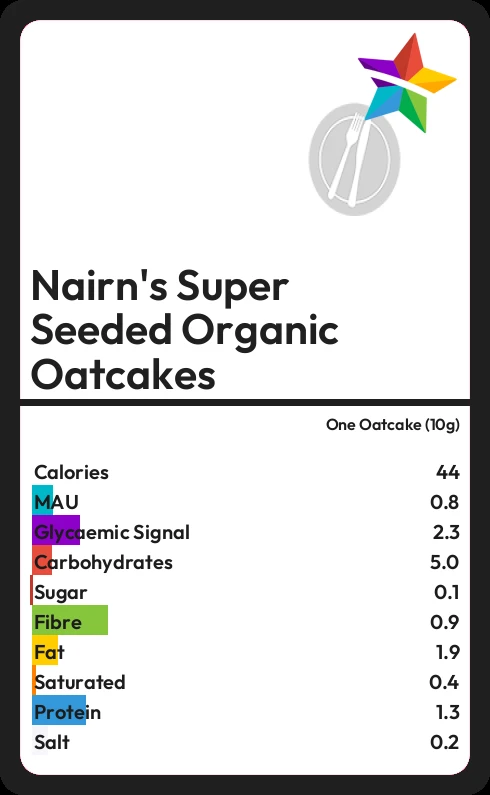 Nairn's Super Seeded Organic Oatcakes contains 44.4 calories in one Oatcake (10g).