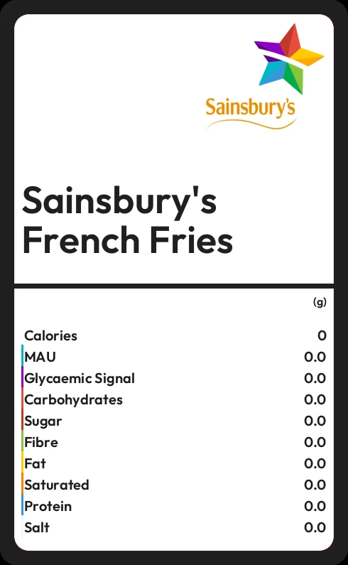 Sainsbury's French Fries contains 0.5g sugar in 100g