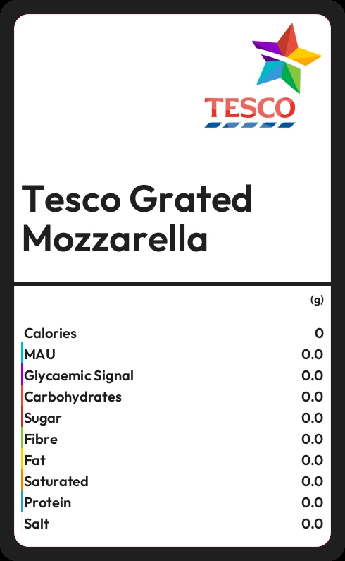 Tesco Grated Mozzarella contains 0.1g sugar in 100g